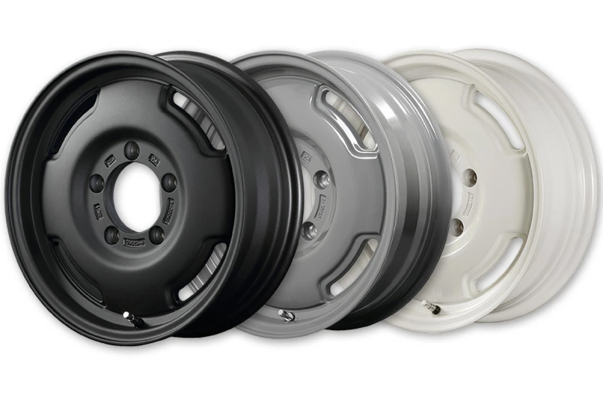 1970年に登場した初代ジムニー(LJ10)のホイールデザインをモチーフにしたシンプルで重厚感のあるデザイン。どの年代のジムニーにも似合う無骨さがあり、カラーは「ブラック」「ガンメタ」「ホワイト」の3色。ジムニーをクラシックで初代ジムニーのような雰囲気でまとめたいという方におすすめのホイール