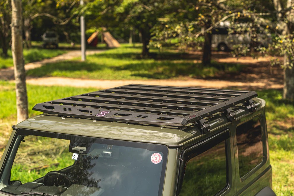 ジムニーのスクエアデザインに違和感なくマッチするルーフラック