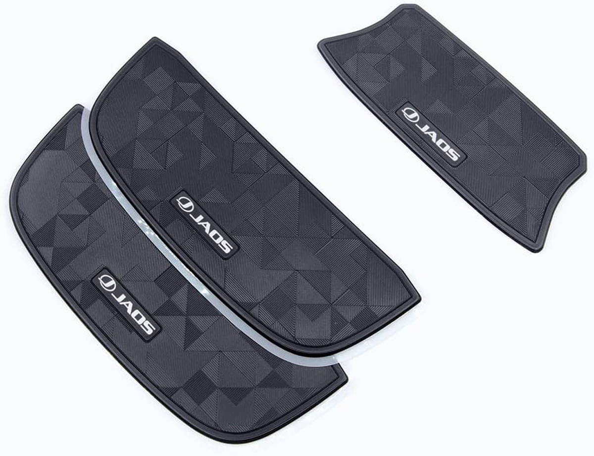 スポーティーなカーボン調にJAOSのロゴが入ったデザインで、ジムニーのドアハンドル形状にピッタリと装着できる。PVC素材を使用しているので耐候性と耐スクラッチ性に優れている。サイドドアとリアゲートの3枚セットでジムニー/ジムニーシエラ用になっている。