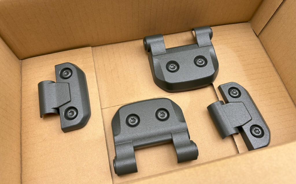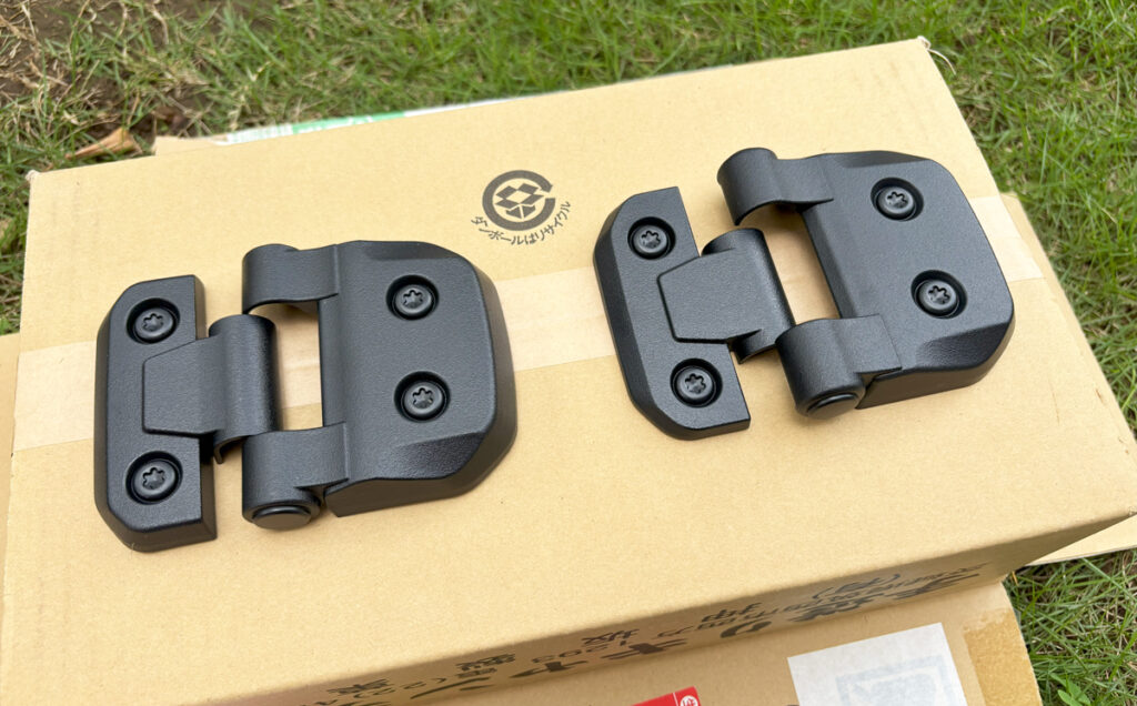 上ヒンジ用と下ヒンジ用でパーツが分かれているので、間違いないように装着しましょう。